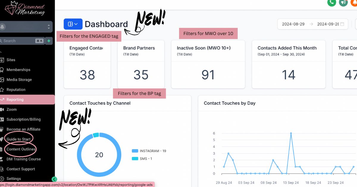 Navigating Your Diamond Marketing Dashboard: Here’s your go-to guide for getting the most out of Diamond Marketing! Explore each section with ease and see how everything is designed to help you grow your business effortlessly: