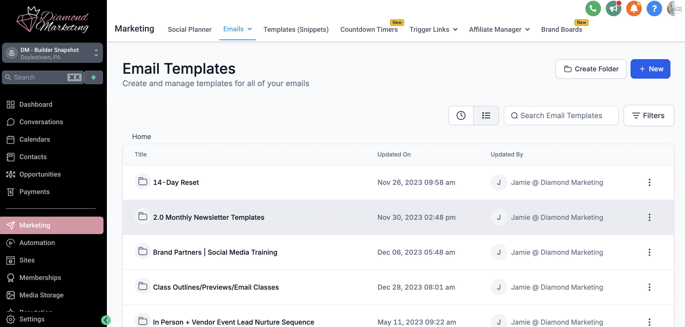 Marketing - Email Templates: Head to the Email tab in the top menu to access your past campaigns and discover preloaded email templates we’ve created for you.