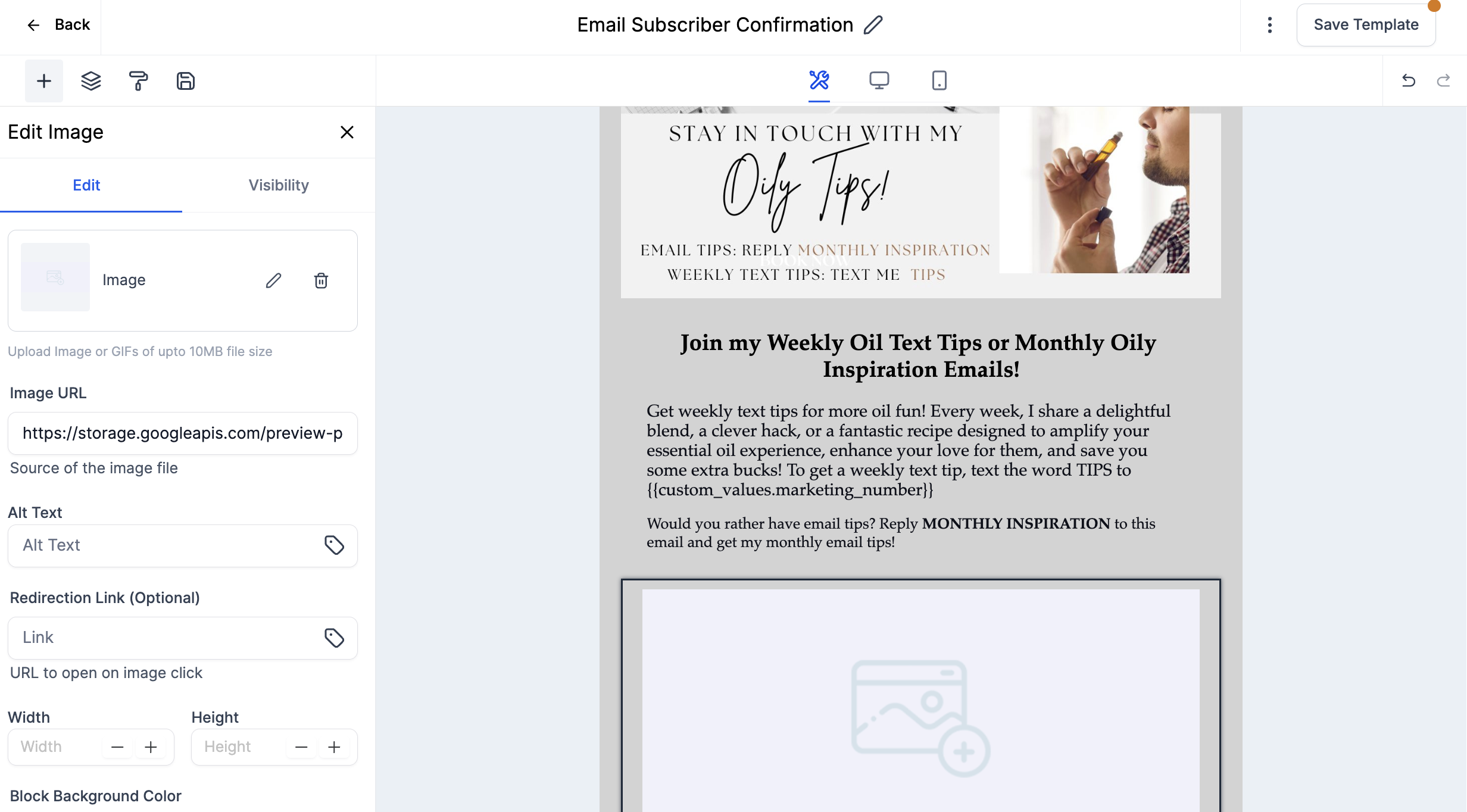 Click on the Preview Icon of the Opt-In Page you'd like to use. Opt-In pages include forms for contacts to fill out that add them directly to the text class. This email template has a Weekly Tips Call-to-Action