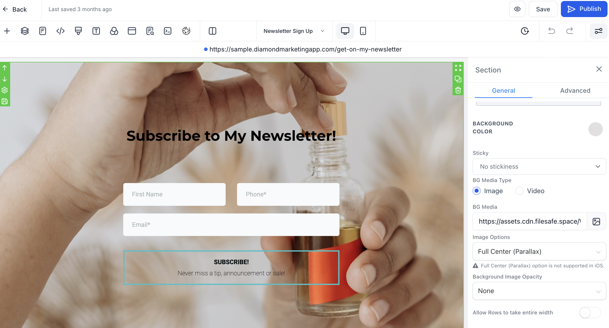 Click the Preview Icon on your Newsletter Sign Up Page